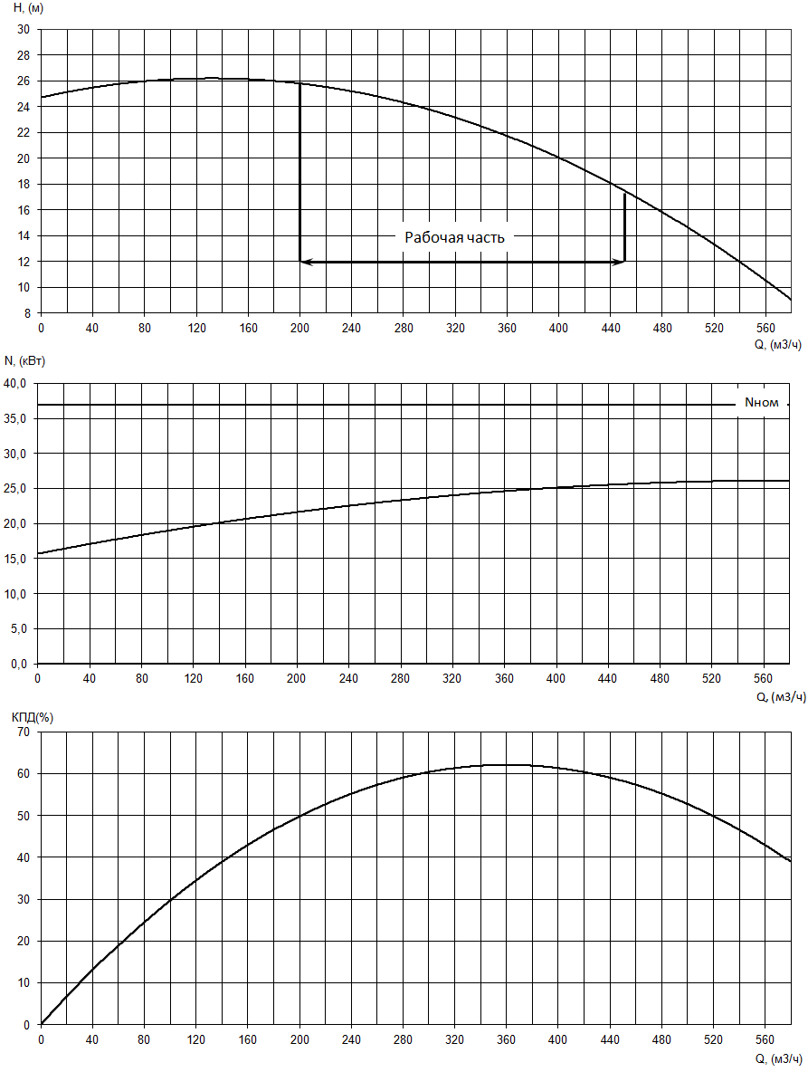 На графике показана зависимость напора, мощности и КПД насоса ЦМЛ 200/250 от расхода. Это основной документ для подбора электронасоса Иртыш ЦМЛ 200/250. Для детального изучения характеристик центробежных насосов рекомендуем ознакомиться с профильной литературой.