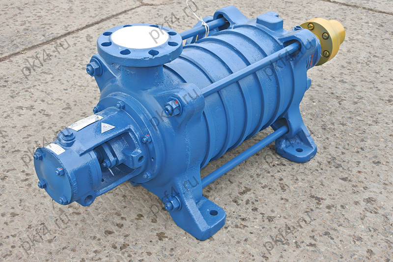 Насосы ЦНСГ 180-212 перемещают поток перекачиваемой жидкости с помощью нескольких рабочих колес, последовательно смонтированных на одном валу, в одном корпусе. В корпусе многоступенчатого секционного насоса имеются отдельные секции, число которых равно числу рабочих колес минус единица, так как одно колесо расположено в крышке корпуса. Секционная конструкция корпуса насоса позволяет менять напор жидкости, не изменяя подачи. Практически напор будет равен сумме напоров, создаваемых каждым рабочим колесом. Следует особо обратить внимание на то, что насосы ЦНСг 180-212 (для горячей воды) должны работать с подпором 10м.