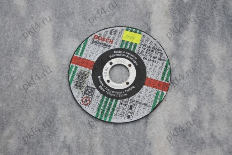 Отрезной прямой круг по камню для ручных угловых шлифмашин. Максимальная окружная скорость: 80 м/с (в зависимости от частоты вращения и диаметра круга). Наружный диаметр 115 мм, диаметр посадочного отверстия 22,23 мм, толщина 2,5 мм. C 24 R BF карбид кремния черный (SiC), размер зерна композита согласно стандарту FERA 24 (среднезернистый, от 0,6 до 1,0 мм),твердый, бакелитовая (из искусственной смолы) связка и армирование стекловолокном.